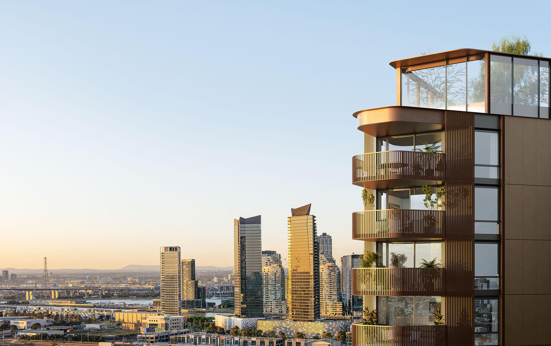 Taking reference from the historic Dunlop factory that once occupied the site through a signature staggered roofline, the architecture's industrial edge is softened with lush foliage that embraces the development's overarching biophilic design principles.